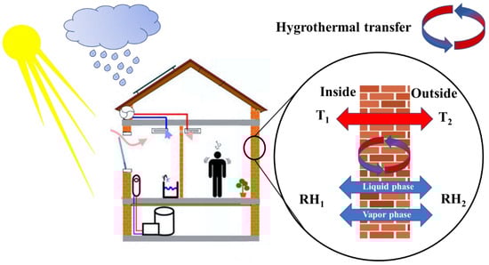 - Abahri, K.; Belarbi, R.; Trabelsi, A. Contribution to Analytical and Numerical Study of Combined Heat and Moisture Transfers in Porous Building Materials. Build. Environ. 2011, 46, 1354–1360. [Google Scholar] [CrossRef]
