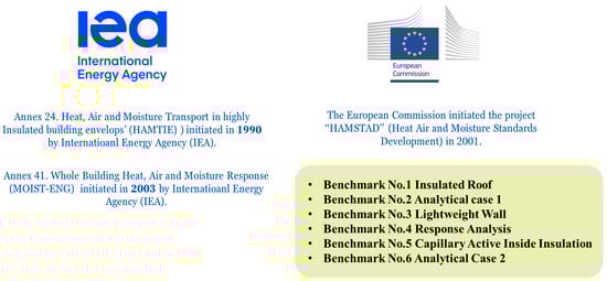 - Hens, H.L.S.C. Combined Heat, Air, Moisture Modelling: A Look Back, How, of Help? Build. Environ. 2015, 91, 138–151. [Google Scholar] [CrossRef]