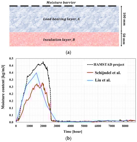 - Hagentoft, C.-E.; Kalagasidis, A.S.; Adl-Zarrabi, B.; Roels, S.; Carmeliet, J.; Hens, H.; Grunewald, J.; Funk, M.; Becker, R.; Shamir, D.; et al. Assessment Method of Numerical Prediction Models for Combined Heat, Air and Moisture Transfer in Building Components: Benchmarks for One-Dimensional Cases. J. Therm. Envel. Build. Sci. 2004, 27, 327–352. [Google Scholar] [CrossRef]