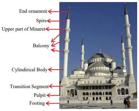 The most often built tall, thin structures in Turkey are reinforced concrete (RC) minarets, which have Islamic architectural influences. The essential components of an RC minaret are shown in Figure 1 [1].