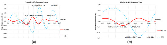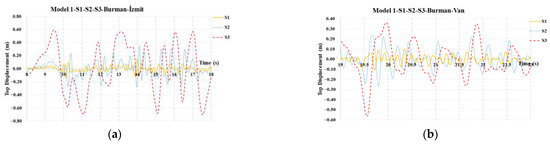 Top displacements of Model 1 for medium soil: (a) İzmit earthquake and (b) Van earthquake.