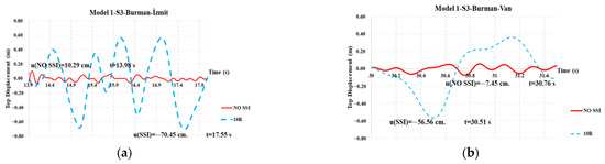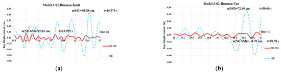 Top displacements of Model 3 for soft soil: (a) İzmit earthquake (b) Van earthquake.