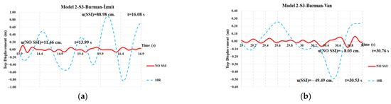 Top displacements of Model 2 for stiff soil: (a) İzmit earthquake and (b) Van earthquake.