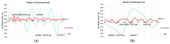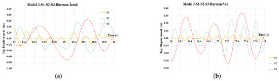 Top displacements of Model 3 for medium soil: (a) İzmit earthquake and (b) Van earthquake.