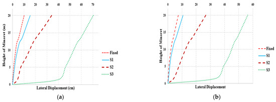 For the S3 (soft) type of soil, the top displacements for the representative minarets are given in Figure 18, Figure 19 and Figure 20.