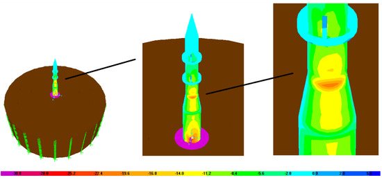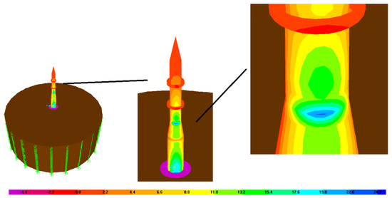 - As cited before, the jet grouting method is an effective way to improve the mechanical properties of the soil. In this way, the top displacements and stress distribution over RC minarets can be reduced to a tolerable limit.