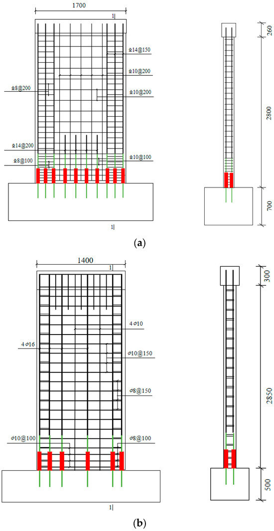 | PSW2 | 1700 × 200 × 2800 | C30 | 0.206 | The anchorage length of the two steel bars on the right side is shortened to 4d. |