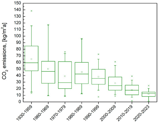 Reducing the carbon dioxide emissions of the building sector is a priority objective in many countries. The renewal and renovation rate of the existing building stock unfortunately falls far short of expectations. Loga et al. presented building typologies created in 20 European countries to support communication about refurbishment measures and achievable energy-performance levels [45]. However, while optimal solutions are difficult to find at the national level, they can be determined at the local level. Theodoridou et al. analyzed the Greek building stock, providing detailed information on typical large and small Greek cities [46]. They also found that the energy consumption of homeowners with higher incomes is higher. This was not the goal of our research, but considering that homeowners of new buildings with large net floor areas have higher incomes, we can conclude that the energy use in these buildings is the lowest. Lupisek et al. provided information on the Czech building stock, analyzing the effects of different scenarios on CO2 emission [47]. In this study, the CO2 emissions were not analyzed assuming different scenarios, but the current CO2 emissions were determined and decarbonization packages were developed for existing buildings built in different periods.