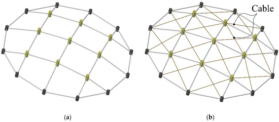 The scaled latticed shell model. (a) Ordinary SLS. (b) Cable-stiffened SLS.