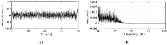 Natural vibration test. (a) Acceleration–time history curve. (b) power spectral density curve.