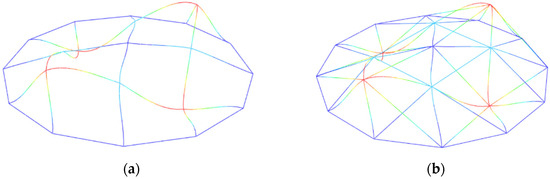 The cable-stiffened latticed shell structure, as a novel form of latticed shell structure, possesses numerous advantages and holds substantial potential for application and research. Consequently, in recent years, many experts and scholars have conducted comprehensive studies on cable-stiffened latticed shell structures. In terms of structural optimization, various optimization algorithms have been proposed by scholars. Wang and Wu [20] utilized shape optimization techniques aiming for the minimal strain energy of the cable-stiffened latticed shell structure, achieving local optimization result smoothing through the method of weights and ultimately obtaining a global optimization outcome. Zhao et al. [21] sought the optimal arrangement of initial prestress in cables using a hybrid optimization algorithm, effectively enhancing the load-carrying capacity of the cable-stiffened latticed shell and reducing the corresponding structure’s peak bending moments. The team also used the AHP-TOPSIS decision-making method for further optimization of the structure, discovering that the complexity of the cable system is not directly proportional to the load-carrying capacity of structures [22]. Regarding the stability of cable-stiffened latticed shell structures and related influencing factors, numerous studies have been conducted. Feng et al. [23], employing continuum theory, proposed formulas for calculating the buckling load of single-layer cylindrical latticed shells with cable-stiffened thin plates, considering initial imperfections, and found that the shear stiffness of the grid is related to the axial stiffness of the cables. Yang et al. [24] examined hexagonal grid cable-stiffened latticed shell structures, concluding that the introduction of the cable system significantly improves the in-plane stiffness of structures. Li et al. [25,26,27,28] systematically investigated the effects of boundary conditions, cable configurations, and prestress on the stability of cable-stiffened latticed shell structures under seismic actions, noting that cable-stiffened latticed shell structures exhibit superior seismic performance compared to ordinary latticed shell structures. Wang et al. [29] integrated optimization algorithms into the overall stability study of cable-stiffened latticed shell structures, indicating that the buckling load decreases with the increase in amplitude of initial imperfections. In recent years, the rapid development of neural networks and deep learning algorithms has provided forward-looking insights for the optimization of reticulated shell structures. These algorithms offer a variety of approaches for multi-parameter and multi-angle optimization, serving as valuable references [30,31,32,33,34].