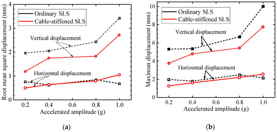 Deformation of SLS models under accelerated magnitude. (a) Ordinary SLS. (b) Cable-stiffened SLS.