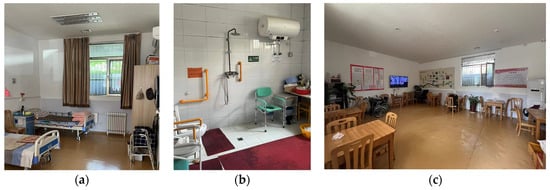 Figure 2. Photos of CECSs in Dongcheng and Xicheng Districts, (a). Daycare room; (b). Assistive bathing room; (c). Dining room.