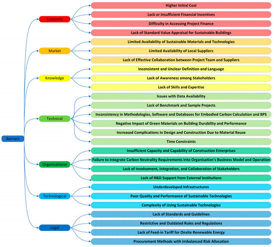 The selected publications were thoroughly reviewed to investigate the challenges and barriers that have been observed or perceived by organisations in different countries in their journey toward the design and construction of new net zero emissions buildings. Numerous barriers were identified and categorised into various groups, including economic barriers, market barriers, knowledge barriers, technical barriers, organisational barriers, technological barriers, and legal barriers. Table 2 provides a complete list of identified barriers, their references, and number of occurrences. They are further elaborated on in the following sections.