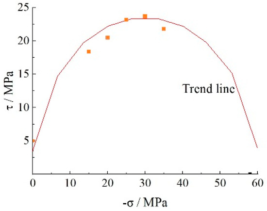 17], the relationship between compressive stress and shear stress is drawn in