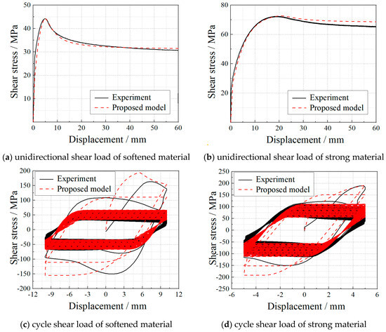 Figure 10 show that the proposed model can provide accurate prediction results for cyclic shear tests. In this model, the elastic model of confined concrete is 7.3 GPa. The yield function is the Cambridge model, where R = 3. In the equation of
