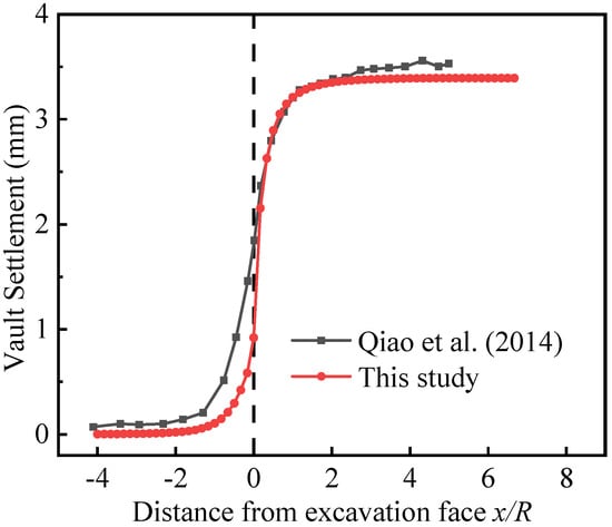 A comparison of the vault settlement derived from the numerical simulations in this investigation and the measured results from a case study [].