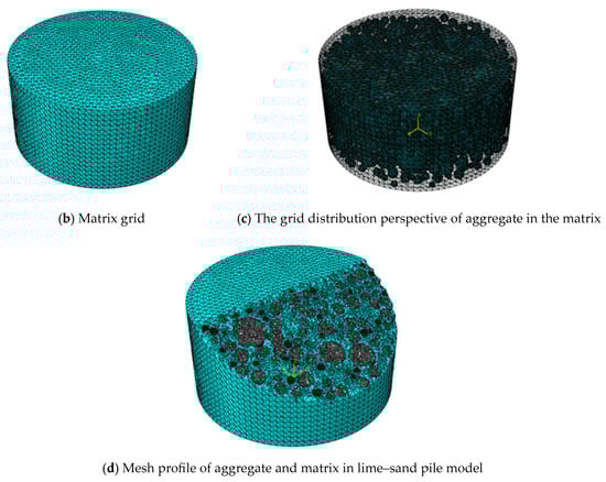 Finally, the mechanical parameters of the lime–sand pile matrix and aggregate are shown in Table 3.