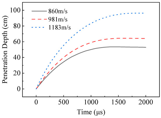 Penetration depth of the projectile under (a) Case 1 and (b) Case 2.