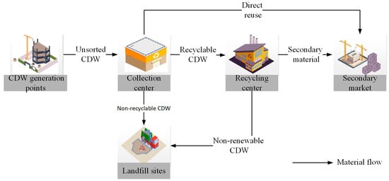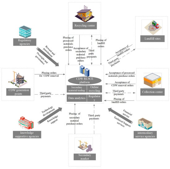 - This paper proposes a conceptual framework of an RLSCE for the construction industry, and builds an Eco-Platform within the RSC: ① Build an online recycling platform for CDW, and realize accurate matching of supply and demand of CDW through big data analysis. ② Track the whole process of the logistics of CDW recycling through big data monitoring technology, forming a whole chain monitoring from the construction site to the secondary material consumption market. ③ Creating a trading platform for secondary materials, improving the quality supervision of secondary materials, and solving the problems of difficulty in determining the quality of secondary materials and insufficient convenience in trading. ④ Provide consulting advice on waste disposal and secondary material procurement for enterprises through big data analysis.