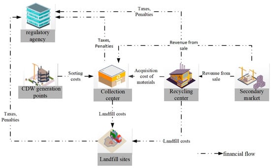 - Xu, J.; Shi, Y.; Zhao, S. Reverse Logistics Network-Based Multiperiod Optimization for Construction and Demolition Waste Disposal. J. Constr. Eng. Manag. 2019, 145, 04018124. [Google Scholar] [CrossRef]