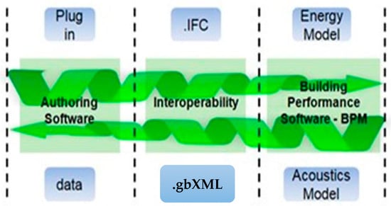 To include acoustic, structural, and energy analysis in the process, the BIM’s interoperability is considered, and the Industry Foundation Classes (IFC) format is taken into consideration. The most frequently mentioned issue and the most researched topic is the “interoperability” between BIM and other building performance models (BPM) such as the building energy modelling (BEM) [48,49], and the building acoustic modelling (BAM) (Figure 1).