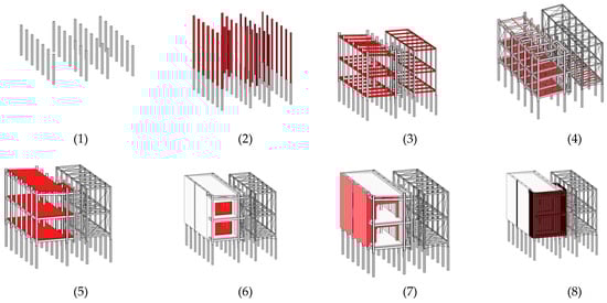 Modular construction is the primary method of off-site construction [5]. Kim comparatively assessed the total energy consumption, resource use, environmental impacts and waste generation in the construction phase of a modular home and a conventional home [6]. Similarly, cradle-to-gate life cycle analyses (LCAs) were conducted by Kamali [7,8,9,10,11] to compare the environmental impacts produced by the construction of different modular and conventional buildings.