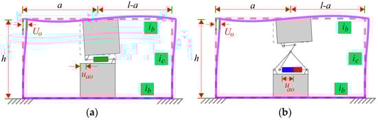 In Equation (3), is calculated using Equation (4) and is calculated using Equation (5). In Equation (4), is the length of the support; is the horizontal angle of the support; is the cross-sectional area of the support; and are the bending line stiffness and shear line stiffness of the intermediate column, respectively; and is the bending line stiffness of the lever arm. In Equation (5), due to the assumption that the height of the upper intermediate column is 1/2 of the floor height, it can be considered safe to assume that is approximately equal to .