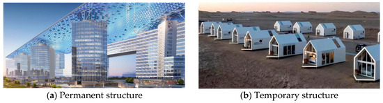 Due to its excellent anti-corrosion performance, aesthetics, and non-magnetic properties, aluminum alloy demonstrates its distinctive appeal in the combination technique with spatial structures [1]. With its outstanding expressive power and good decorative effects, it is highly favored by architects and structural engineers [2]. At present, the most commonly used aluminum alloy structural form is the single-layer aluminum alloy shell structure [3], and rich research results have been formed in this field [4]. With the continuous innovation of the processing technology and joint system, as well as the gradual improvement of the design level, aluminum alloy spatial structures are widely used in semi-permanent or temporary constructions (e.g., medical, exhibitions, event activities, and logistics storage), as well as being applicable in permanent constructions (e.g., sports venues and exhibition centers), as shown in Figure 1.