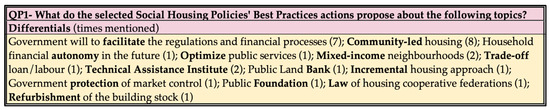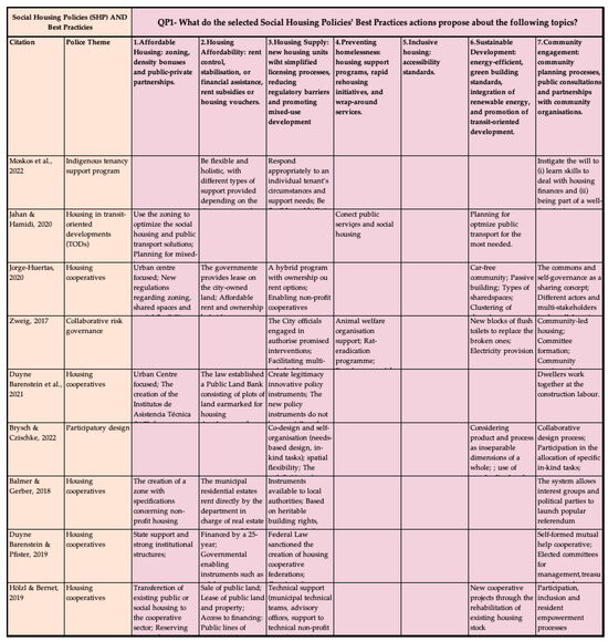 QP1—What do the selected Social Housing Policies’ Best Practices (SHBP) propose about the following topics?