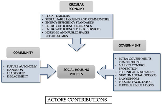 Since social housing (SH) is the core concept of this paper, the authors define social housing as affordable housing for low-income families or people with difficulties in finding housing, owned and managed by the government or by non-profit organisations, for leasing or joining the property, based on defined government rules [2,3]. However, challenges such as social inclusion, access to healthy housing conditions, economic improvement and the optimal use of natural resources must be addressed for adequate and permanent social housing.