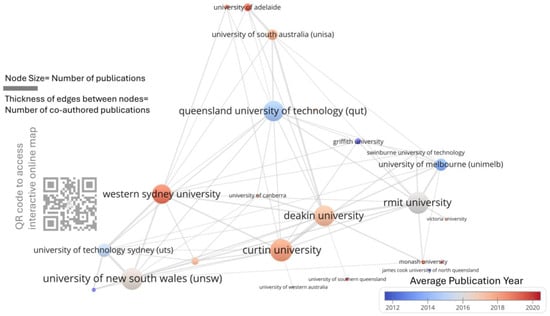 64]. With this consideration, the following section analyzes the co-authorship network of Australian universities involved in the subject area.