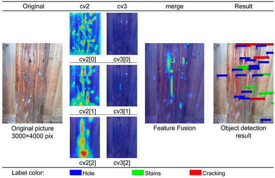 The use of YOLO (You Only Look Once) visual recognition technology can significantly improve monitoring and diagnostic efficiency for wooden structures [53]. YOLO is an efficient object detection algorithm that can quickly identify and classify various objects in real-time video streams [54]. We can effectively apply this technology to architectural areas that are difficult to inspect directly, such as roof beams and floor support structures, by training the YOLO algorithm to detect signs of damage in wood, such as cracks, decay, and warping. The implementation of YOLO technology not only helps increase detection speed but also enhances detection accuracy [55]. Early wood defect detection mainly relied on stress wave, X-ray, and ultrasonic technology. Stress wave technology requires high environmental control, and the equipment used needs to be fixed on the wood. X-ray imaging limits the sensitivity of defect identification due to its poor image quality and low visual contrast. Lastly, although ultrasonic waves can reveal internal and external defects, they are sensitive to external conditions and easily interfered with. These methods have their own advantages and disadvantages, which affect the accuracy and efficiency of detection [56]. Therefore, visual judgment is widely used as a standard for early detection and damage judgment for wood materials, and these preliminary assessments provide an effective method professionals can use to conduct targeted inspections later with minimal impact on buildings. YOLO technology can be deployed faster and provide preliminary visual judgments for early wood defect detection [57,58].