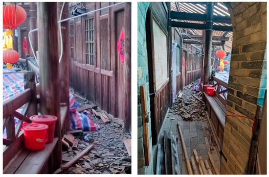 In Tulous, a traditional architectural form, wood is extensively used as the primary structural material. Despite centuries of natural erosion and human activity, these buildings often undergo renovation, even the well-preserved ones. Currently, Tulous face challenges like a decrease in residents, an increase in tourist traffic causing damage [86,87], and discontinuity in the transmission of repair techniques (Figure 4). The protection and restoration of the wooden structure are of imminent importance [88].