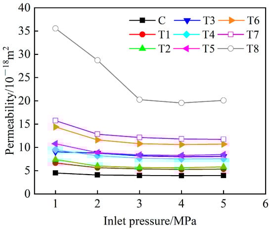- The gas permeability decreases gradually with the increase in inlet pressure, but it basically stabilizes when the inlet pressure exceeds 3 MPa.