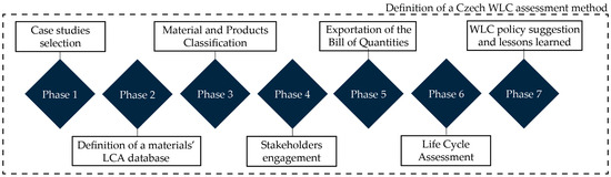 Workflow for the definition of a Czech buildings’ WLC assessment process.