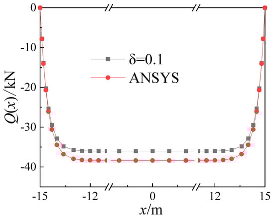 By substituting the undetermined coefficients C1 and C2 into Equation (26), the interfacial shear force can be determined: