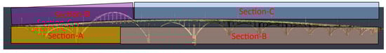 Much published research utilizes the scan-to-BIM approach to develop BIM models for heritage bridges from the captured TLS point clouds as a primary data source [,,]. This method starts with scanning the bridge structure to create a detailed point cloud, which is then used as a reference to build an accurate 3D model in a BIM software platform, such as Autodesk Revit, Trimble Tekla, or Bentley OpenBridge Modeler [,,]. This approach is particularly effective for capturing the as-built conditions of existing structures, providing a precise digital representation based on real-world data [,]. The scan-to-BIM approach is feasible for documenting heritage bridges due to the following:
