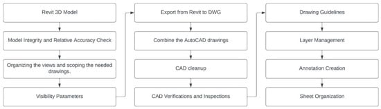 As illustrated in Figure 5, the process of digital documentation of the EPB involved four main stages: site assessment and project planning, on-site data acquisition, data post-processing and management, and data utilization for developing the BIM model and HAER drawings.