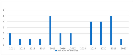 Studies selected per year.