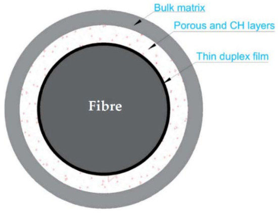 Schematic of the components of the ITZ between the fibre and paste [30].