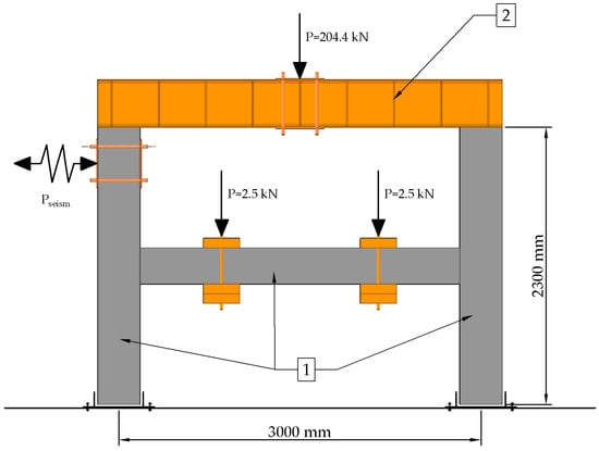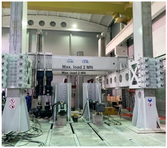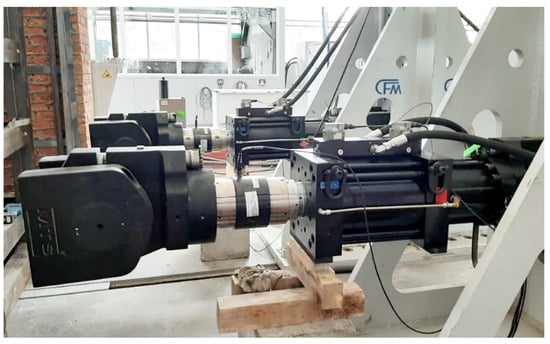 In studies [,,,,], a comprehensive assessment approach using the capabilities of mathematical modeling of structures and physical experiments was supported. Vibration platforms for modeling dynamic impacts were most often used. This approach provided good practical results; however, it did not allow for the modeling of high-intensity seismic impacts for large-scale models such as 1:1 or 1:2. Therefore, in the study presented herein, the impact modeling approach using a hydraulic cylinder bench was applied.