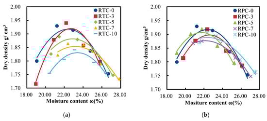 - The results of the compaction test showed that there were minor differences in the optimal moisture content between RTC and RPC, while the maximum dry densities of the two were very close to each other, at 1.91 g/cm³ and 1.93 g/cm³, respectively.