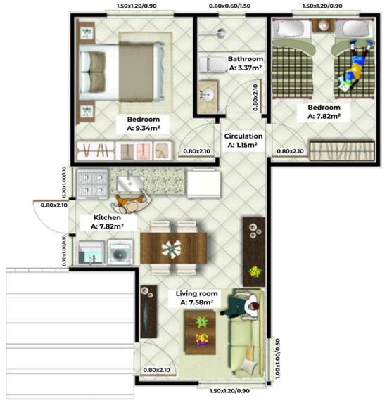 House floor design plan of the residential unit studied. Source: Adapted from Martins et al. [22].
