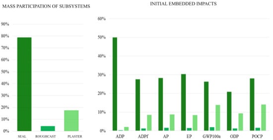 - In the wall subsystem analysis, data representing the plaster subsystem showed a significant participation in the total impacts.