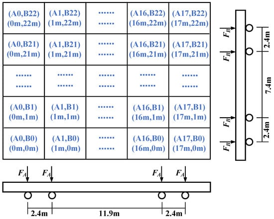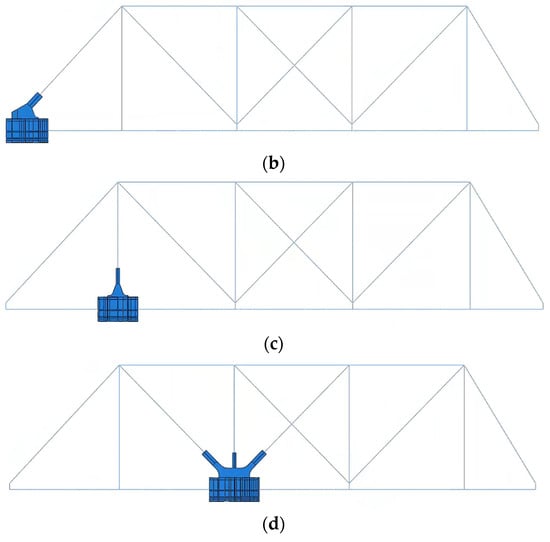 Due to the random movement of the cranes on both sides of the overall bracket-crane truss, making their specific positions uncertain, a comprehensive approach is adopted to account for the cranes’ different positions, as shown in Figure 5. The methodology involves