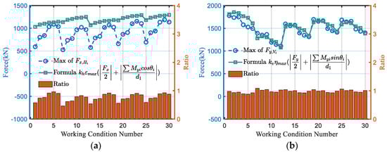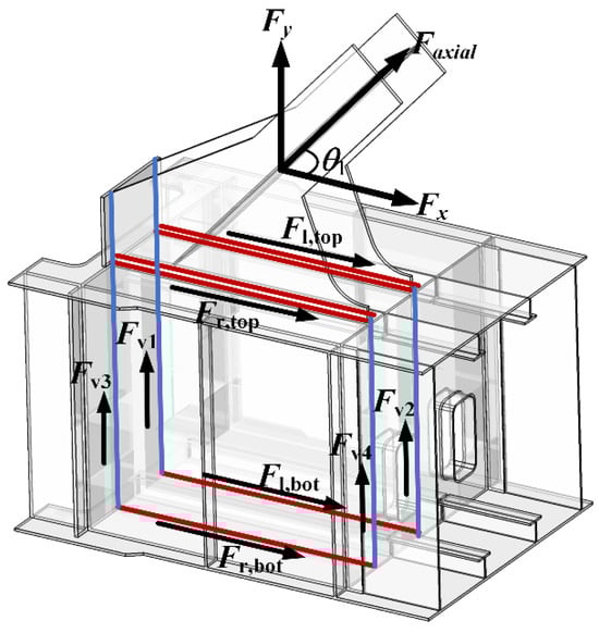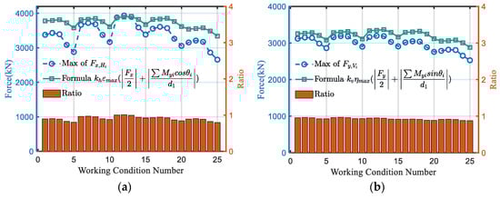Weld force formula verification of the support nodes: (a) horizontal weld force transmissions; (b) vertical weld force transmissions.