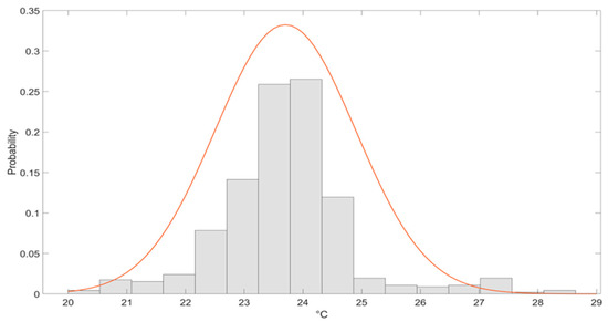 Figure 2 gives the probability distribution of cabin temperatures for all flights in the literature studied, which approximately follows a normal distribution. Approximately, over 60% of the flights have cabin temperatures in the range of 23–24 °C. It is worth noting that the thermal sensation of the passengers is not uniform, and for the existing cabin air conditioning systems, the air supply vents located above the passenger’s head result in a colder sensation.