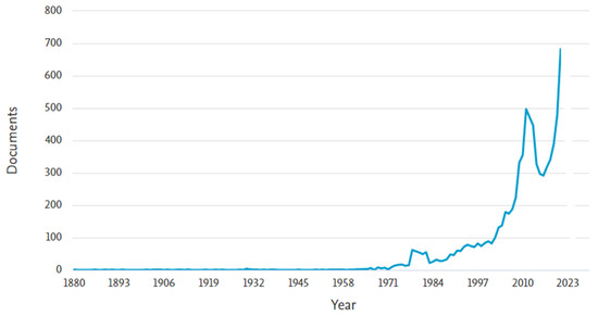 In the CiteSpace program, there are a few important concepts that help us understand scholarly networks and how they change. Clusters are groups of closely connected nodes, showing themes or research communities [73,74,75]. A burst, according to CiteSpace, is a sudden increase in the frequency of a particular type of events. It helps us see when there is a lot of activity or significance in a dataset. Centrality points out nodes that are important in the overall network, indicating their central position among many connected nodes. Lastly, CiteSpace uses the Sigma metric to measure the importance of a node in a network of cited references [76,77]. Sigma helps highlight structurally important nodes, showing rapid growth in citations, which is known as citation abundance [47]. This temporal aspect helps researchers identify nodes with growing influence, giving a detailed understanding of how specific scholarly works become more impactful and prominent over time.