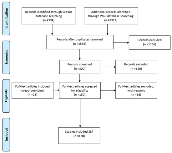 After completing all data collection steps, a total of 120 publications were included in the SLR and analyzed (Figure 2).